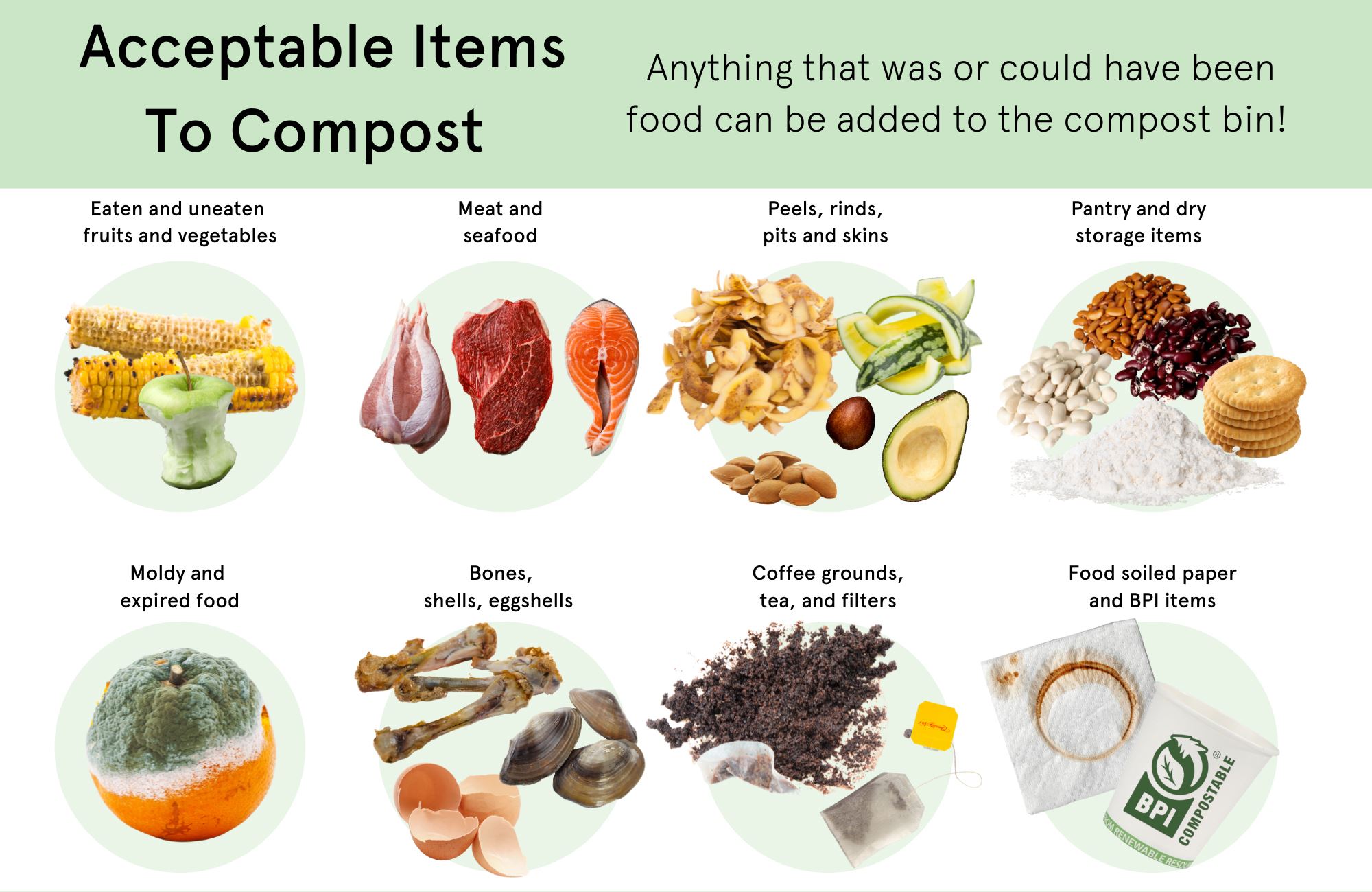 If it's food, it can be composted through this program. This includes meat, seafood and dairy (bones and shells too). Paper items soiled with food and BPI certified plates and cutlery are also accepted. Visit rustbeltriders.com/whatcanicompost for a detailed list.