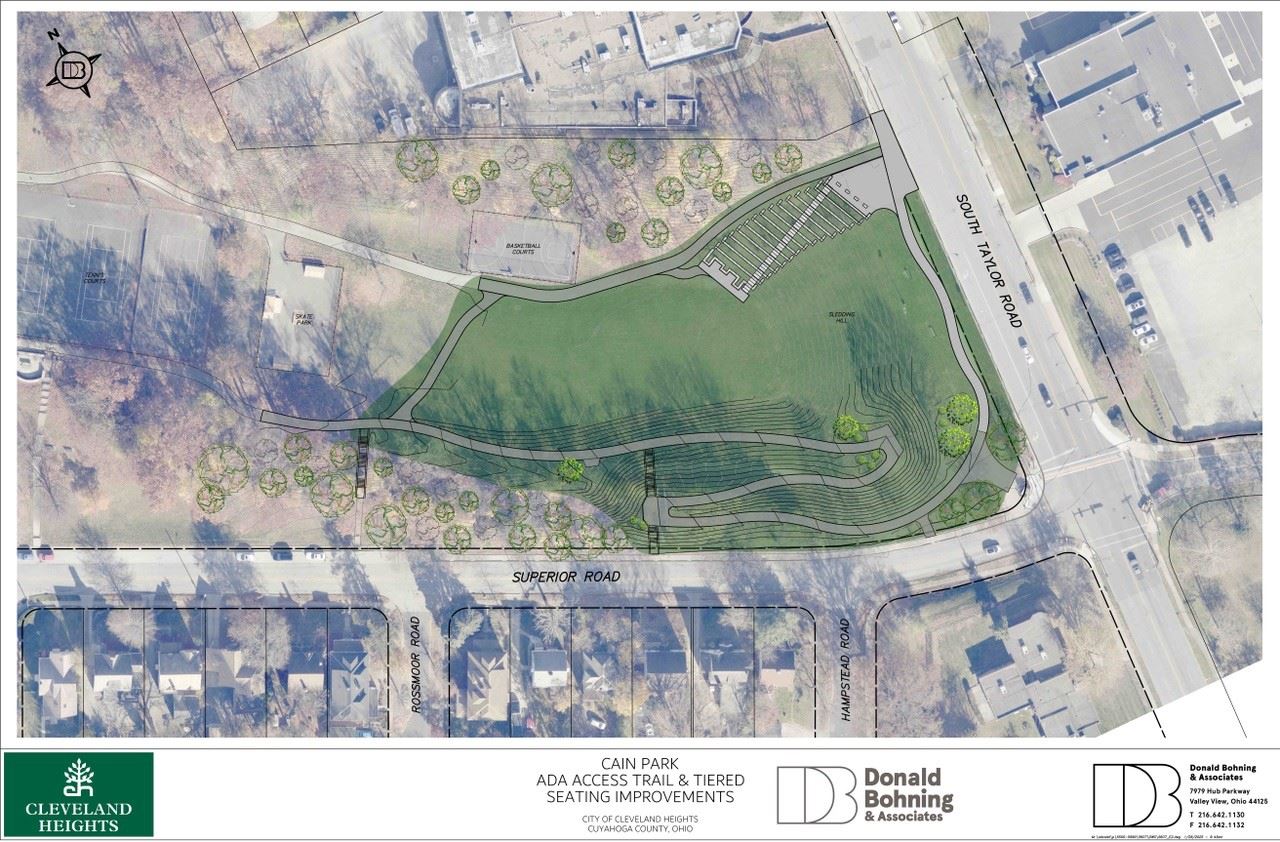 CLEVELAND HEIGHTS, OH -- The City of Cleveland Heights is proud to announce construction of a tiered, amphitheater-style seating area and an ADA accessible ramp inside Cain Park, flanking the park’s popular sledding hill, will begin in March. The project is paid for with a federal government grant that the 117th Congress approved for the City from the American Rescue Plan Act (ARPA) of 2021.